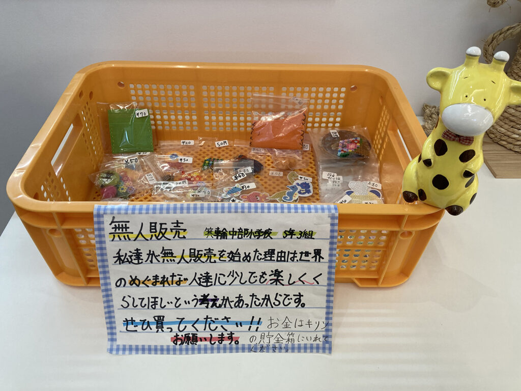 ユニセフ寄付のお願い 新着情報 このたび、箕輪中部小学校 5年3組の児童の皆さんが心をこめて制作した作品を販売いたします。作品は1点20円 ~ 200円でお買い求めいただけます。売上金はすべて、ユニセフを通じて世界の子供たちへの支援として寄付いたします。児童の皆さんの学びと想いのこもった取り組みに、あたたかいご支援・ご協力をお願いいたします。 作品設置場所 みのわBASE 1F 受付カウンター前設置期間 作品完売時に終了(おおむね 2026年1月末位までを予定しております) Share: Older Post 哲学cafe 参加者募集 Newer Post クラフトテープ手作り体験会(大人向け)
